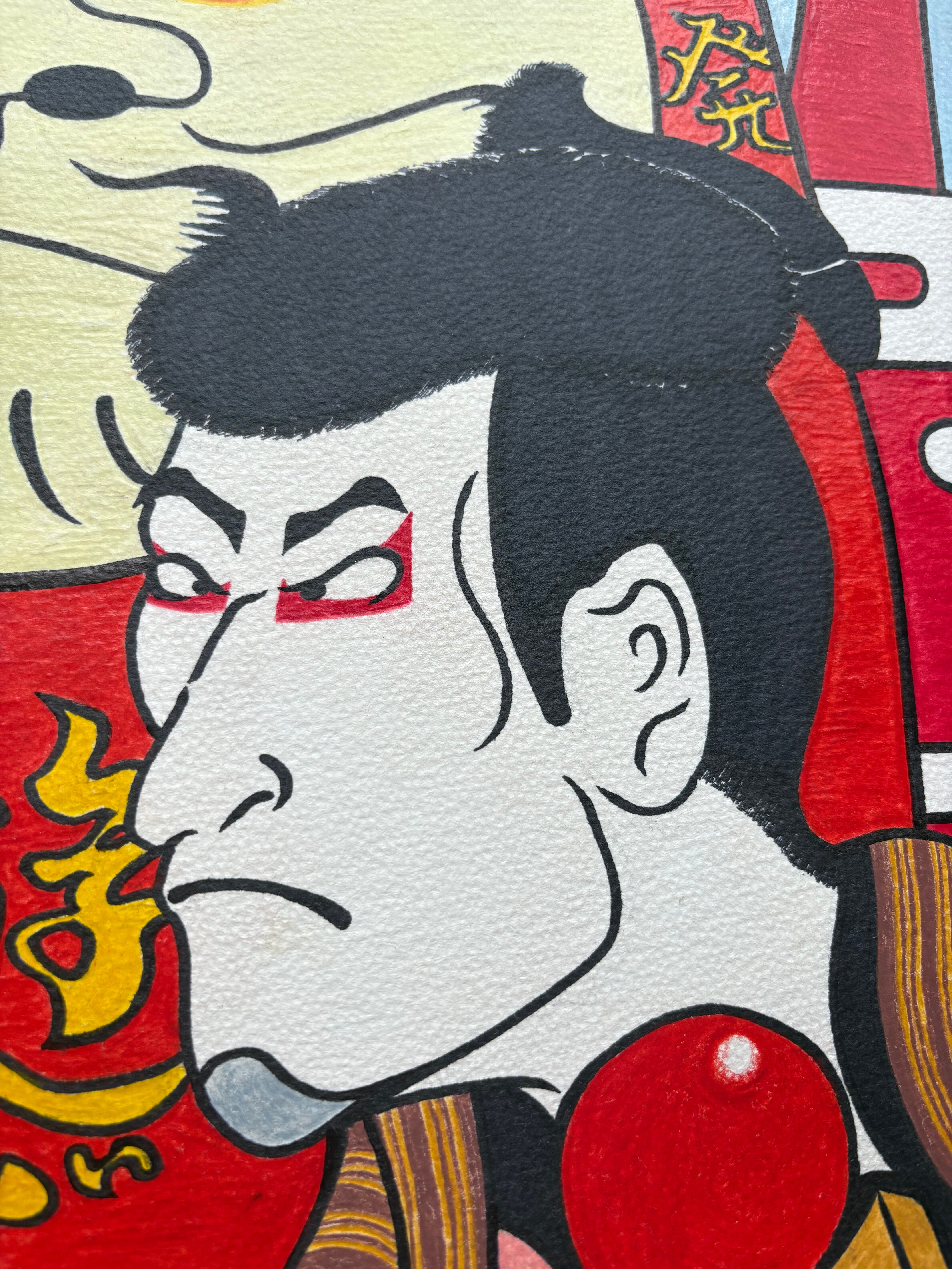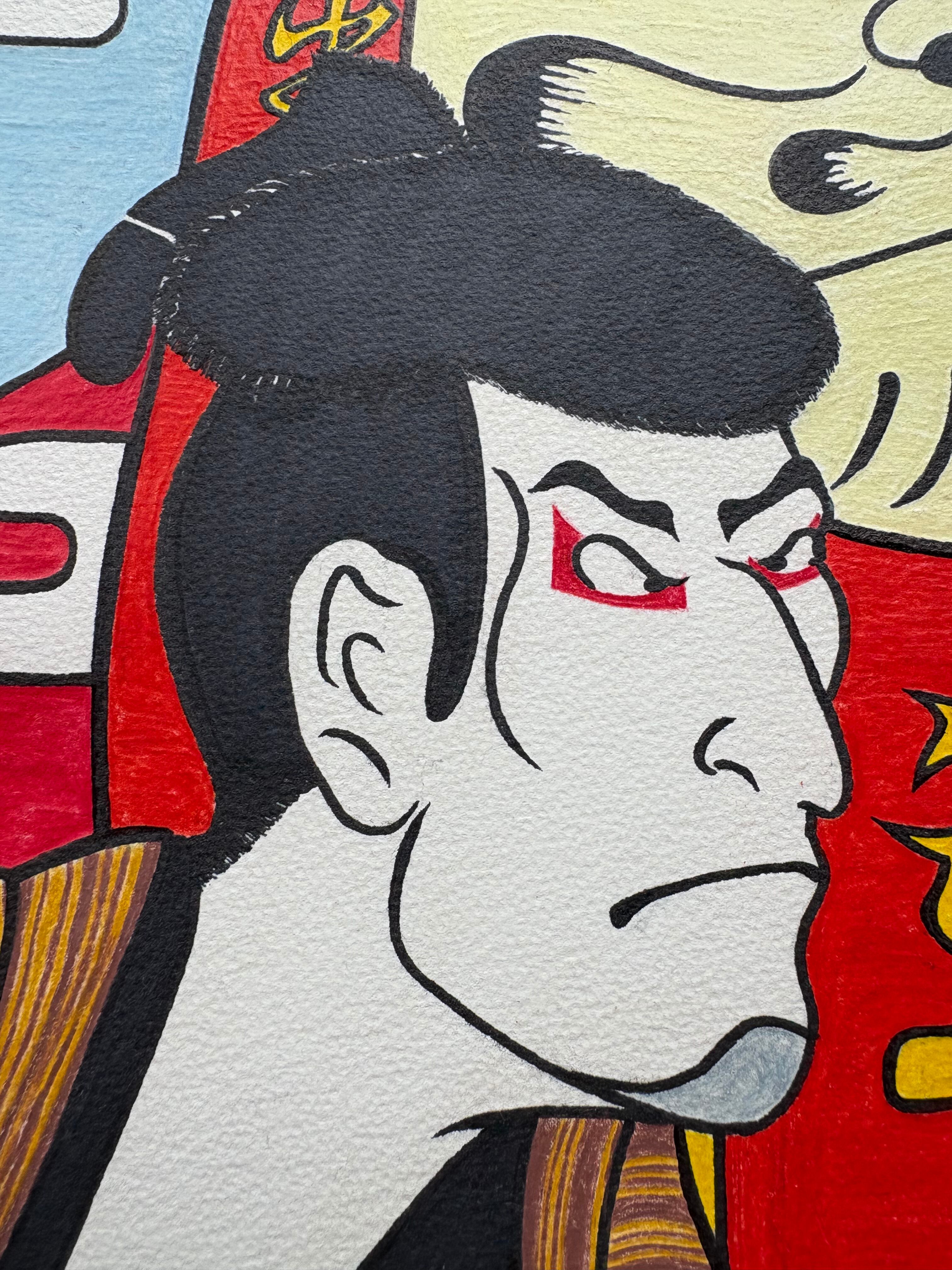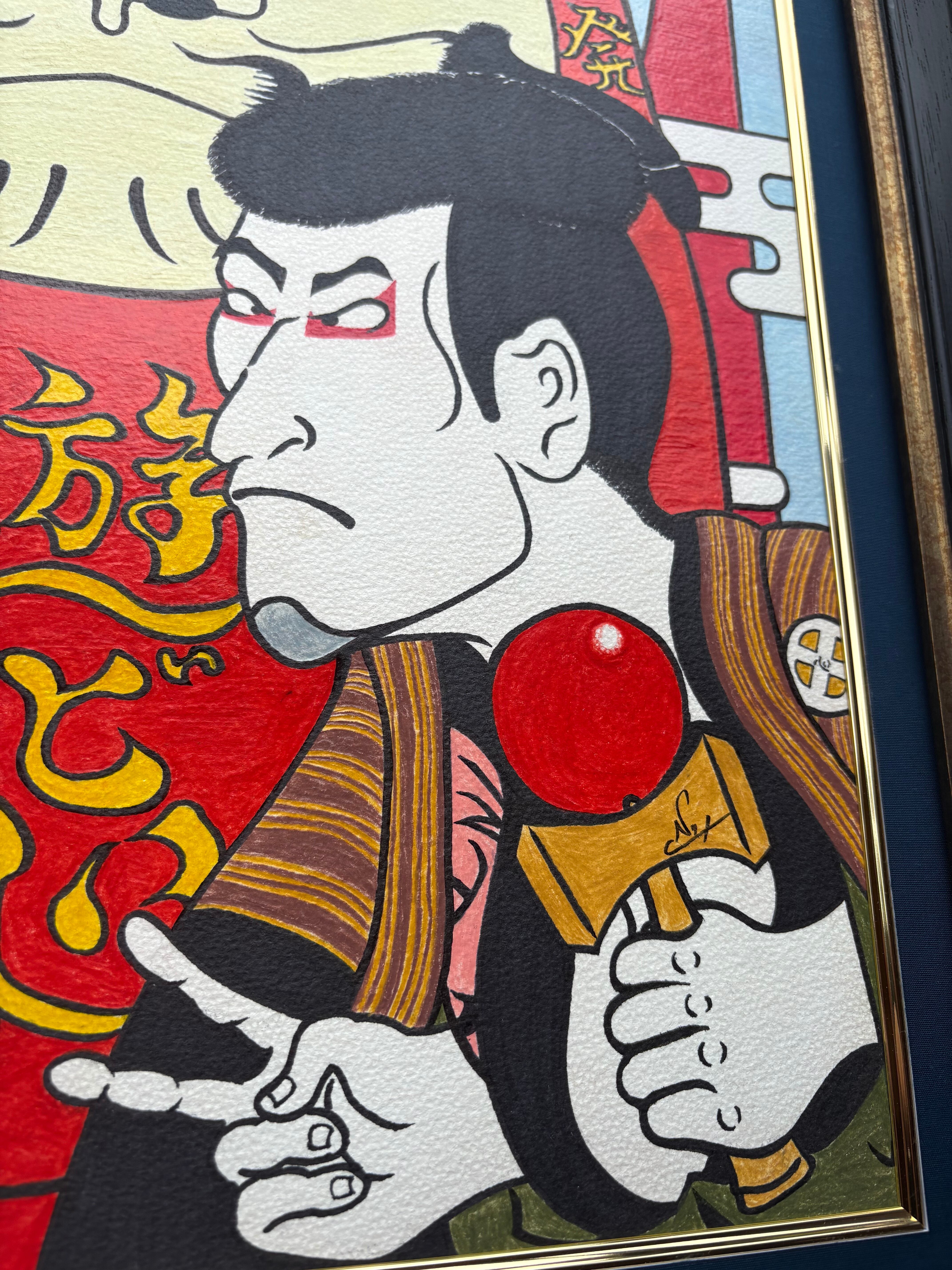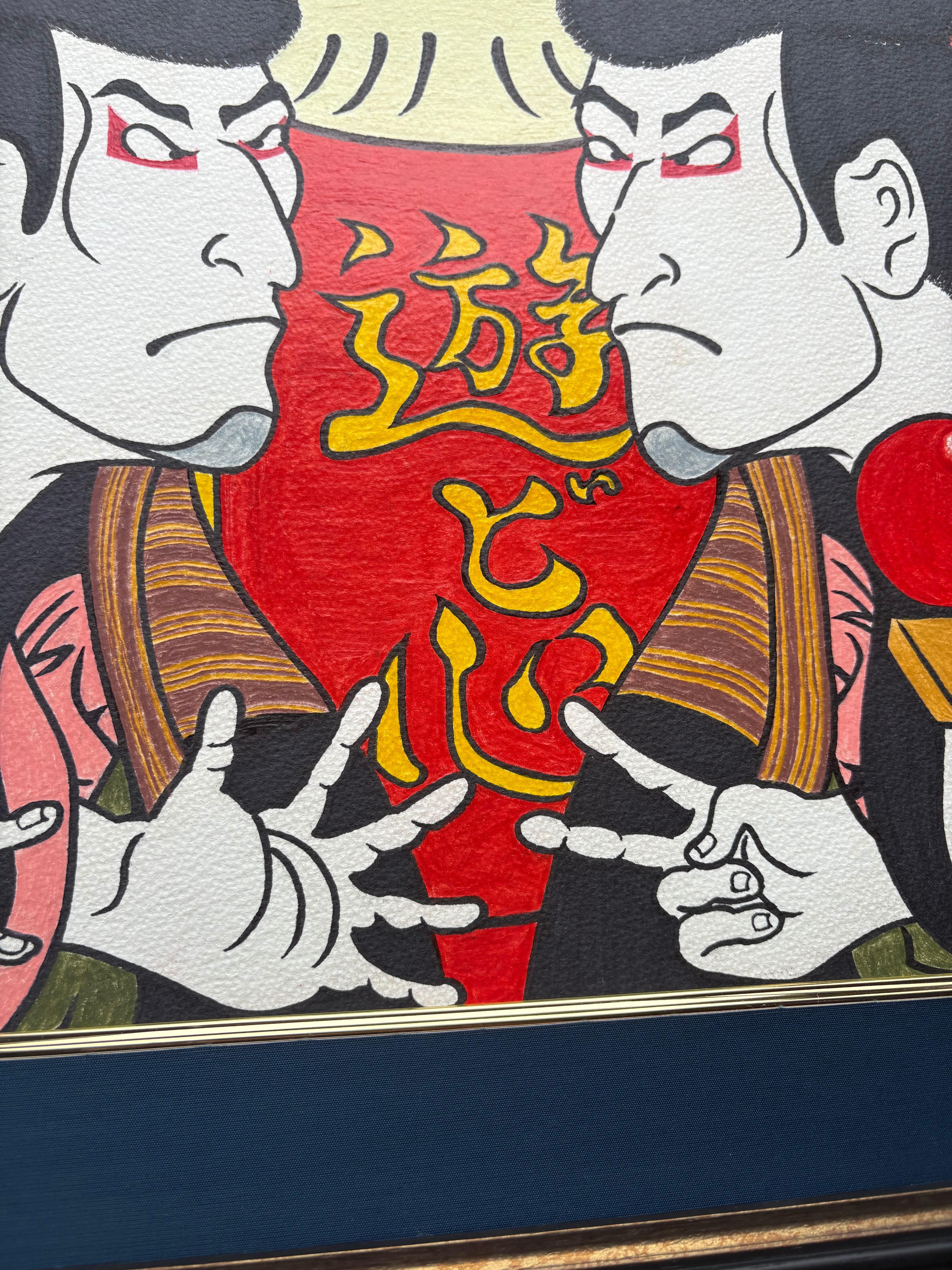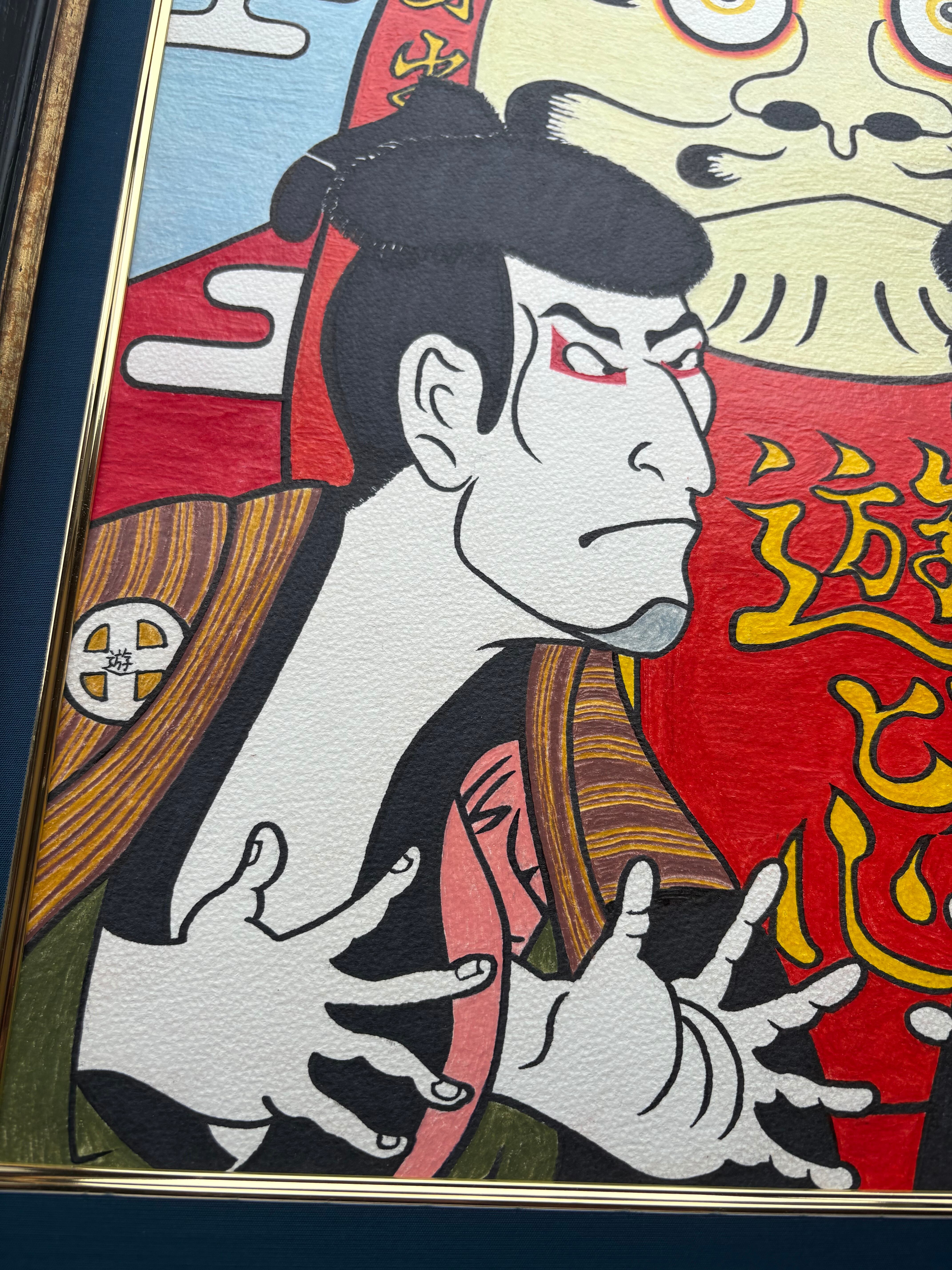 色鉛筆で描いたユニークな和風の絵画です。