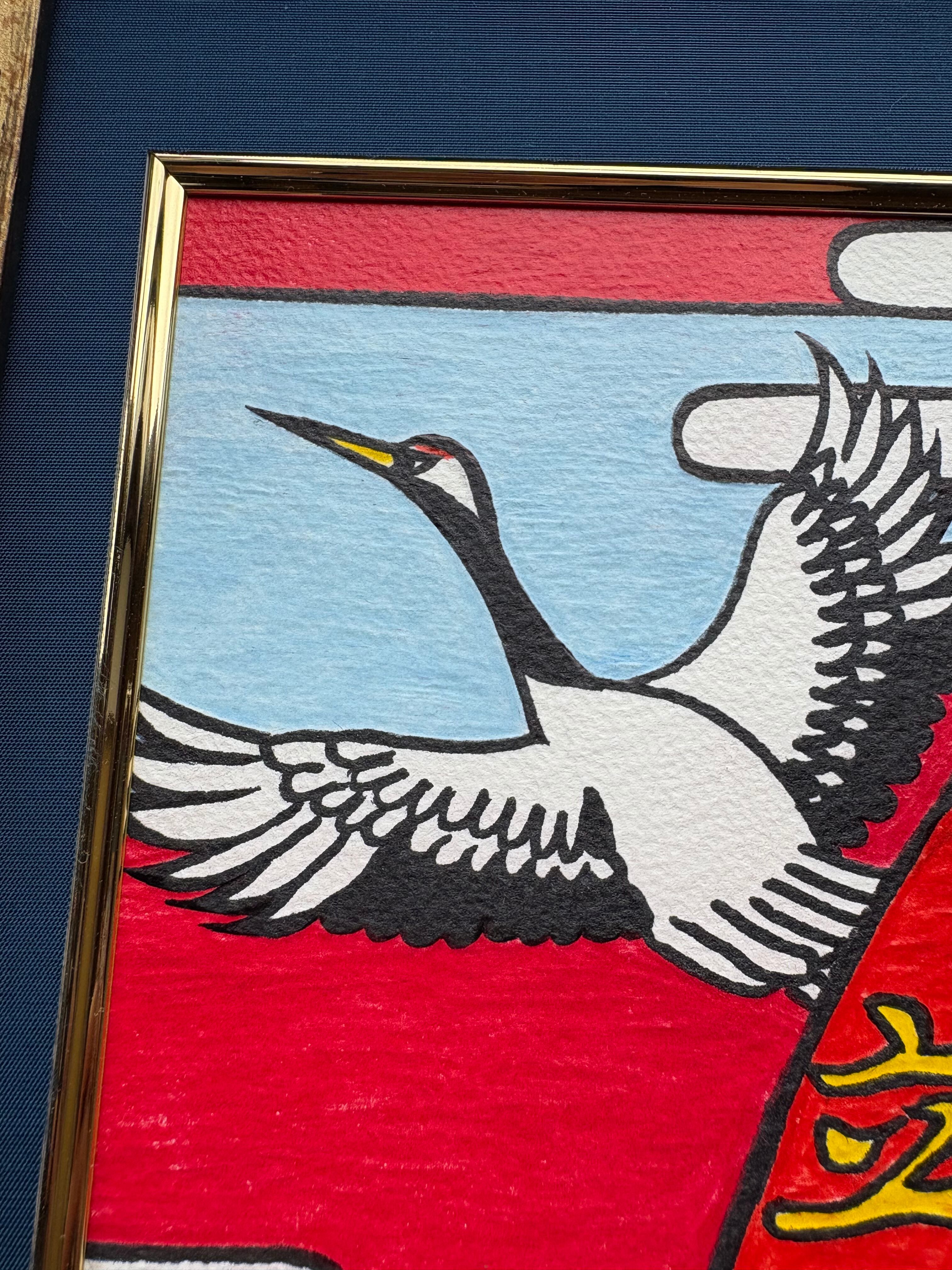 【RPS】 色鉛筆画 和風イラスト 和柄 達磨 鶴 太陽 浮世絵 ジャンケン 面白い絵 遊び心 原画 NARITO