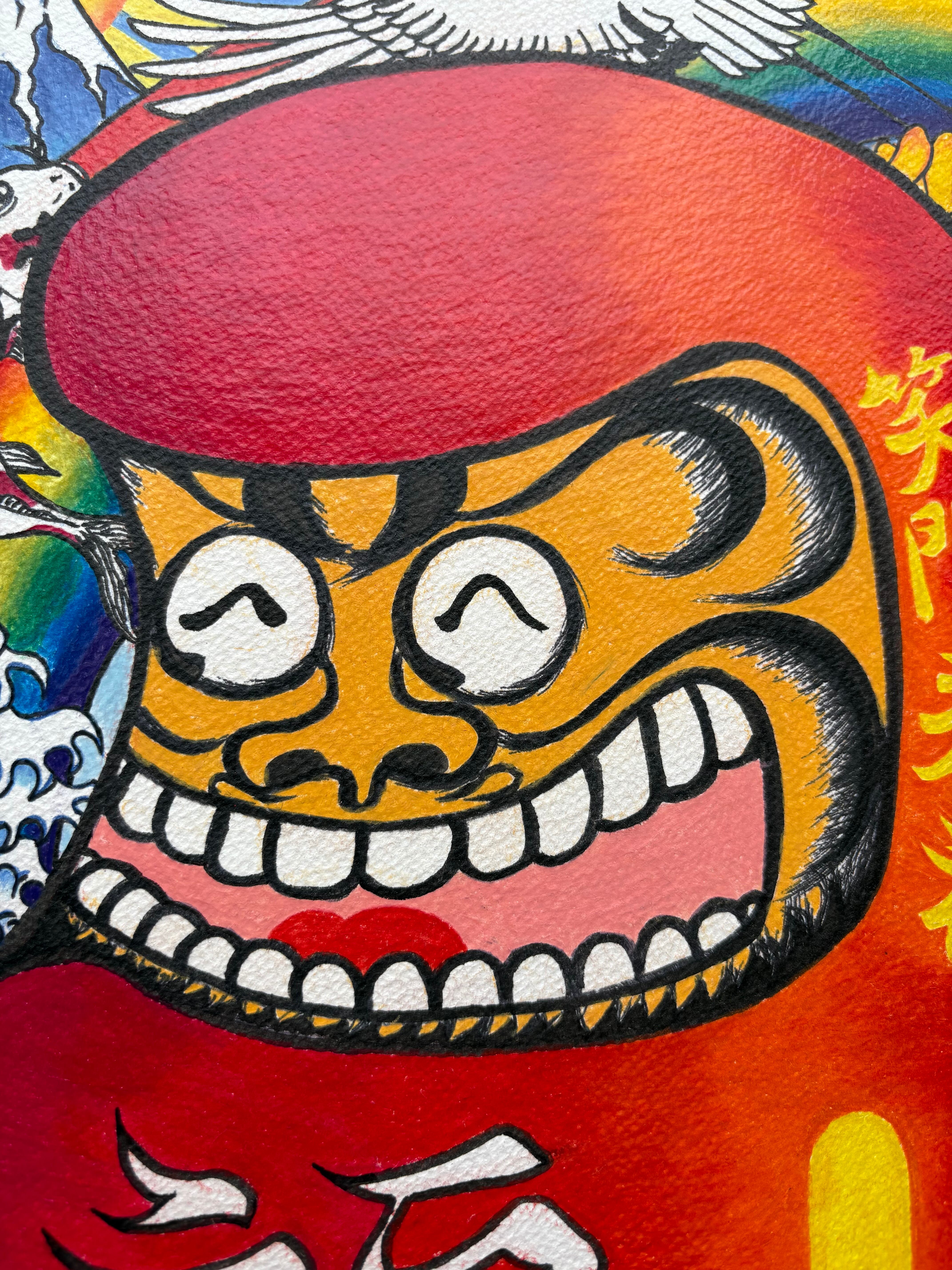 【吉祥達磨】 色鉛筆画 和風イラスト 和柄 富士山 太陽 達磨 桜 鶴 菊 虹 縁起物 笑門来福 福 原画 遊び心 NARITO