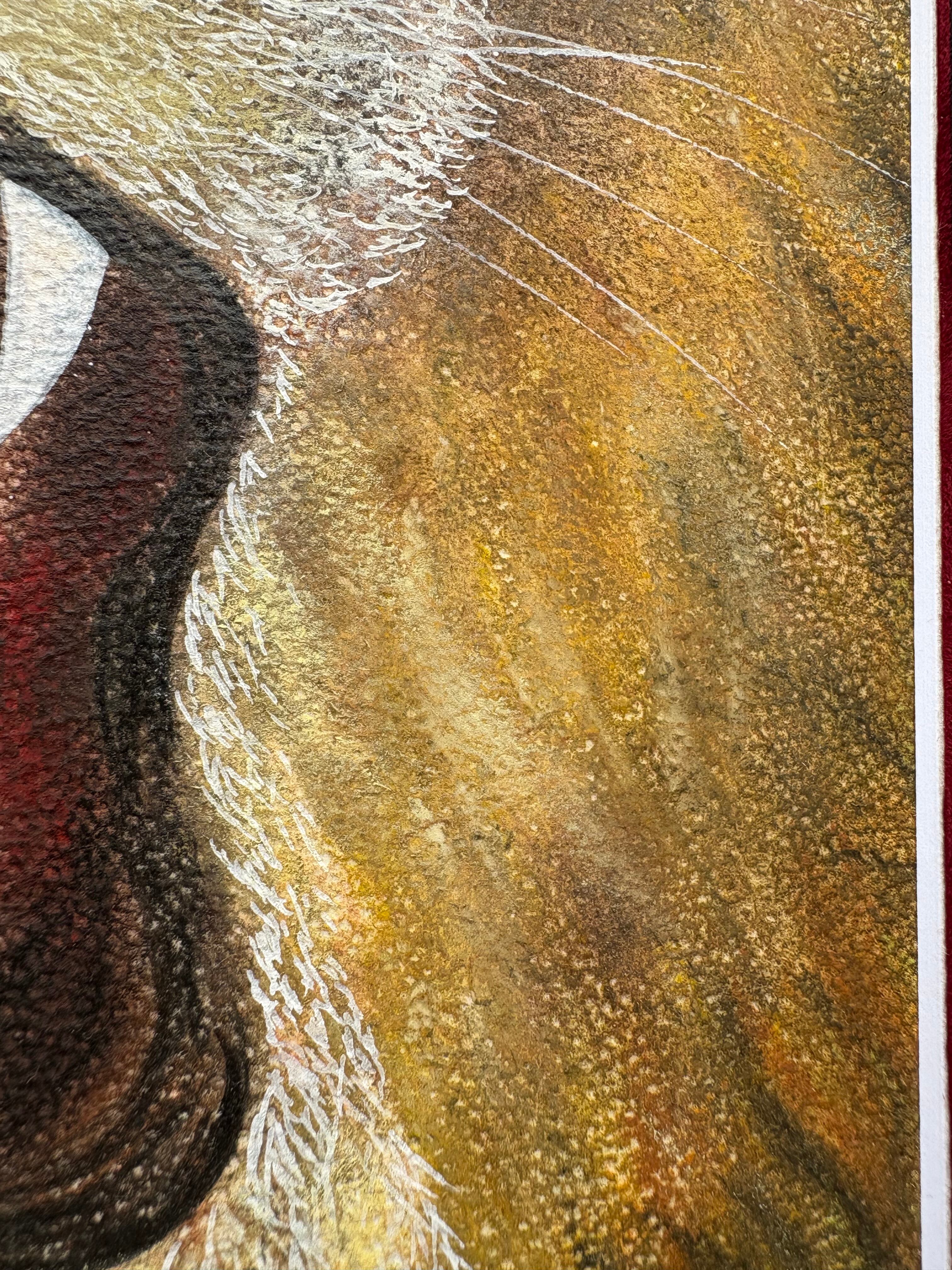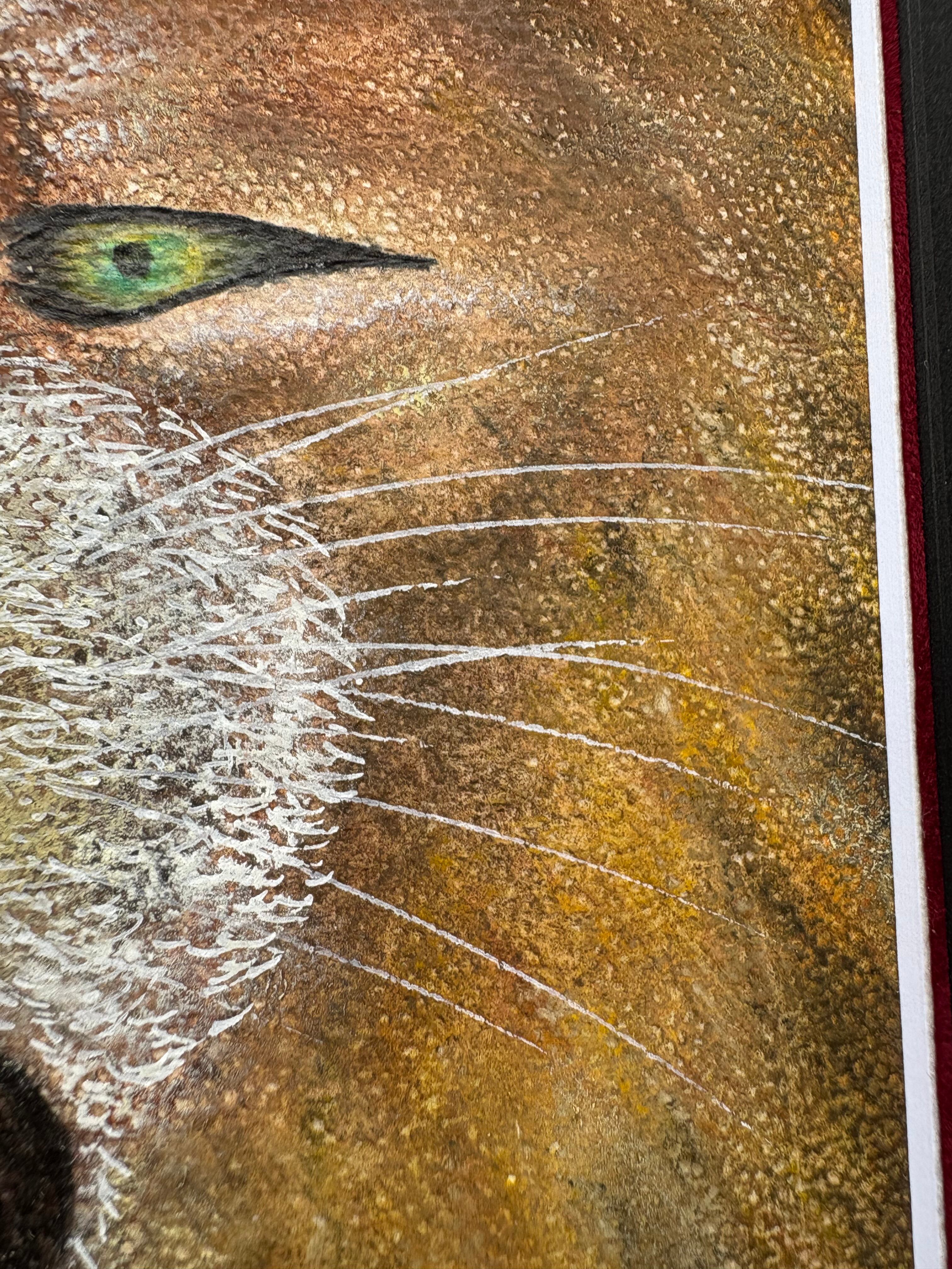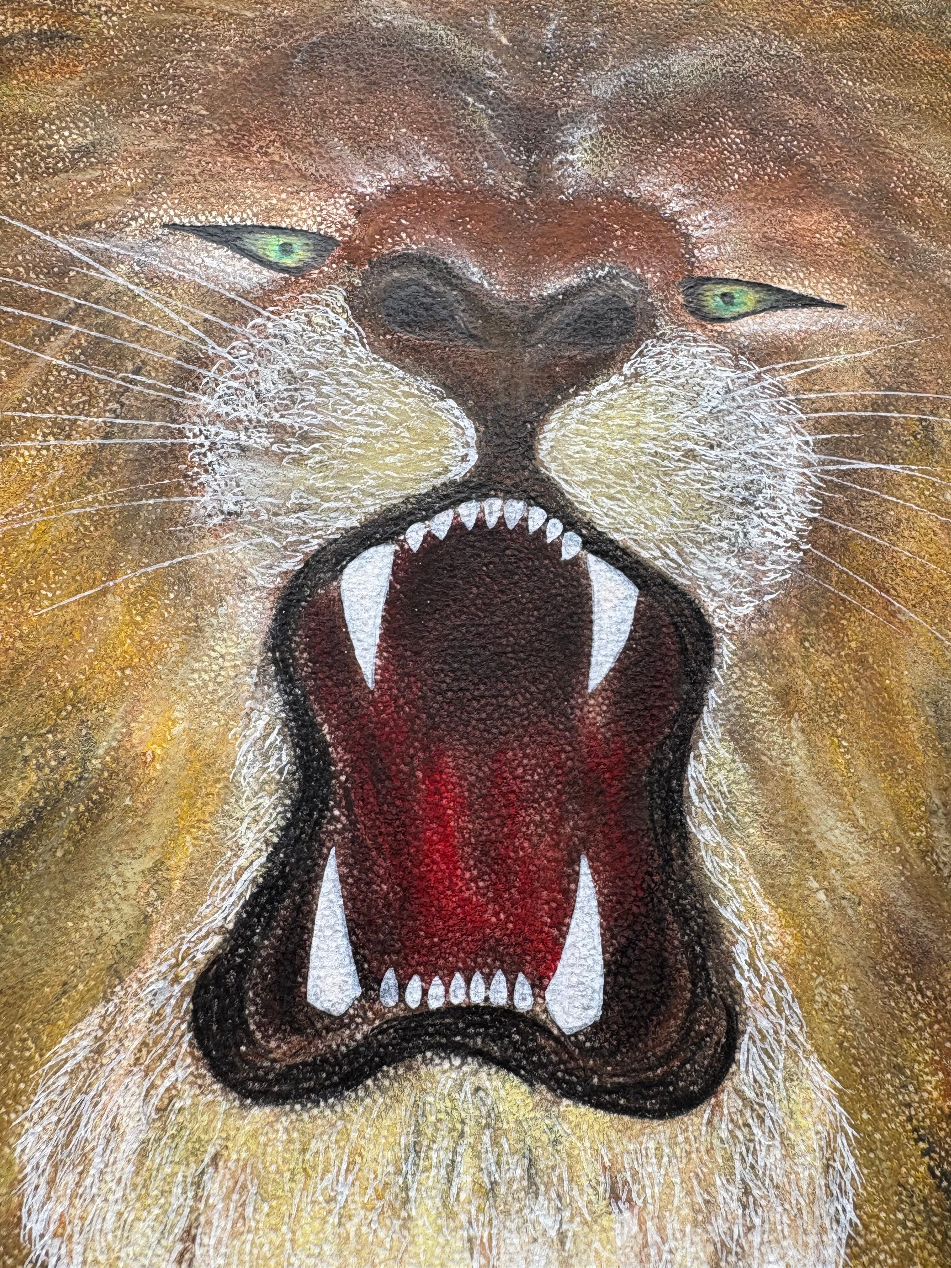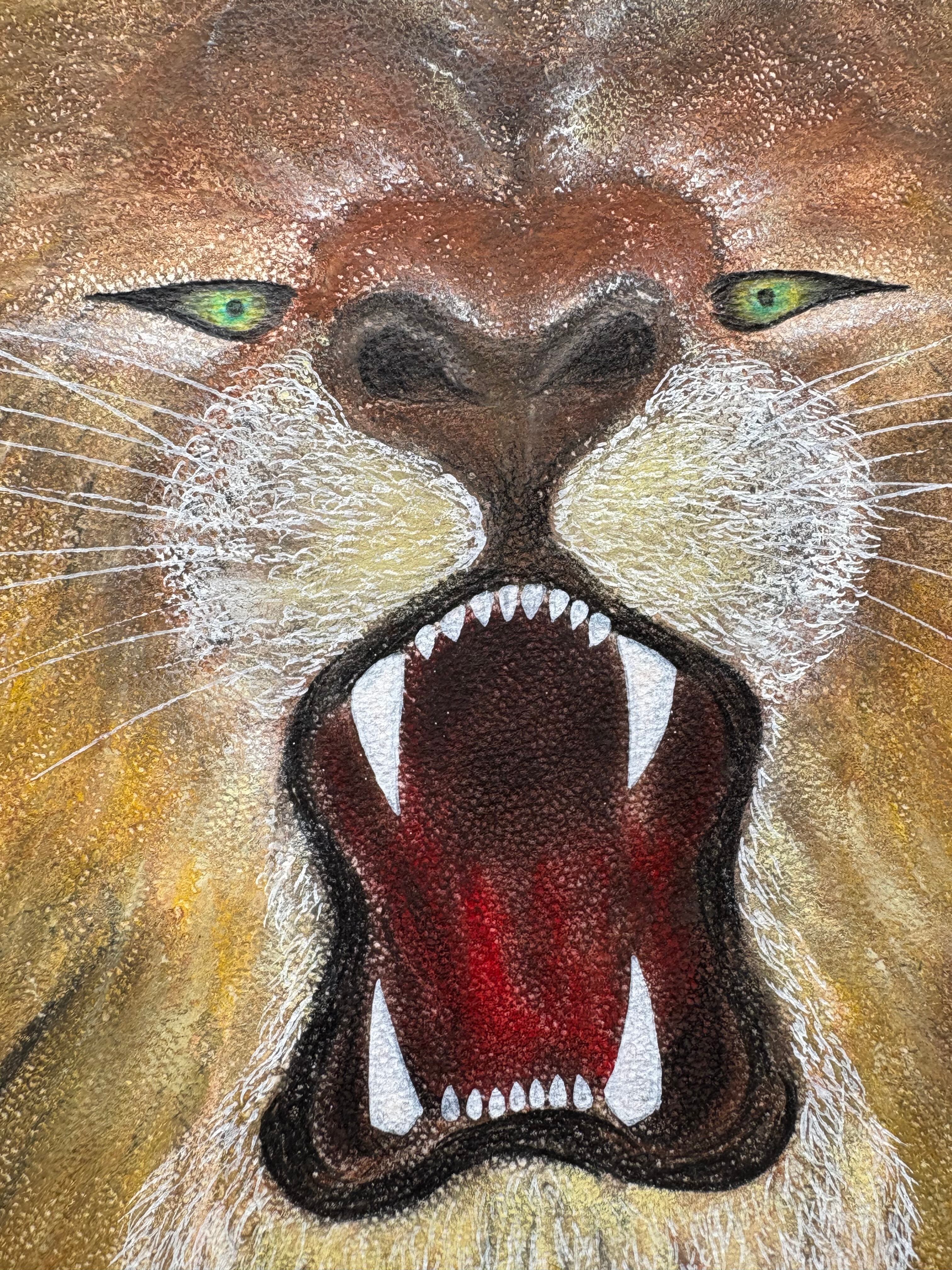 圧倒的な存在感を持つアート、「百獣の王」ライオンです!パステル色合いで描かれたこの獅子は、優雅さと力強さを同時に表現し、見る人に深い印象を与えます。この作品は、あなたの生活空間に華やかさを添える特別なアイテムとなることでしょう!
