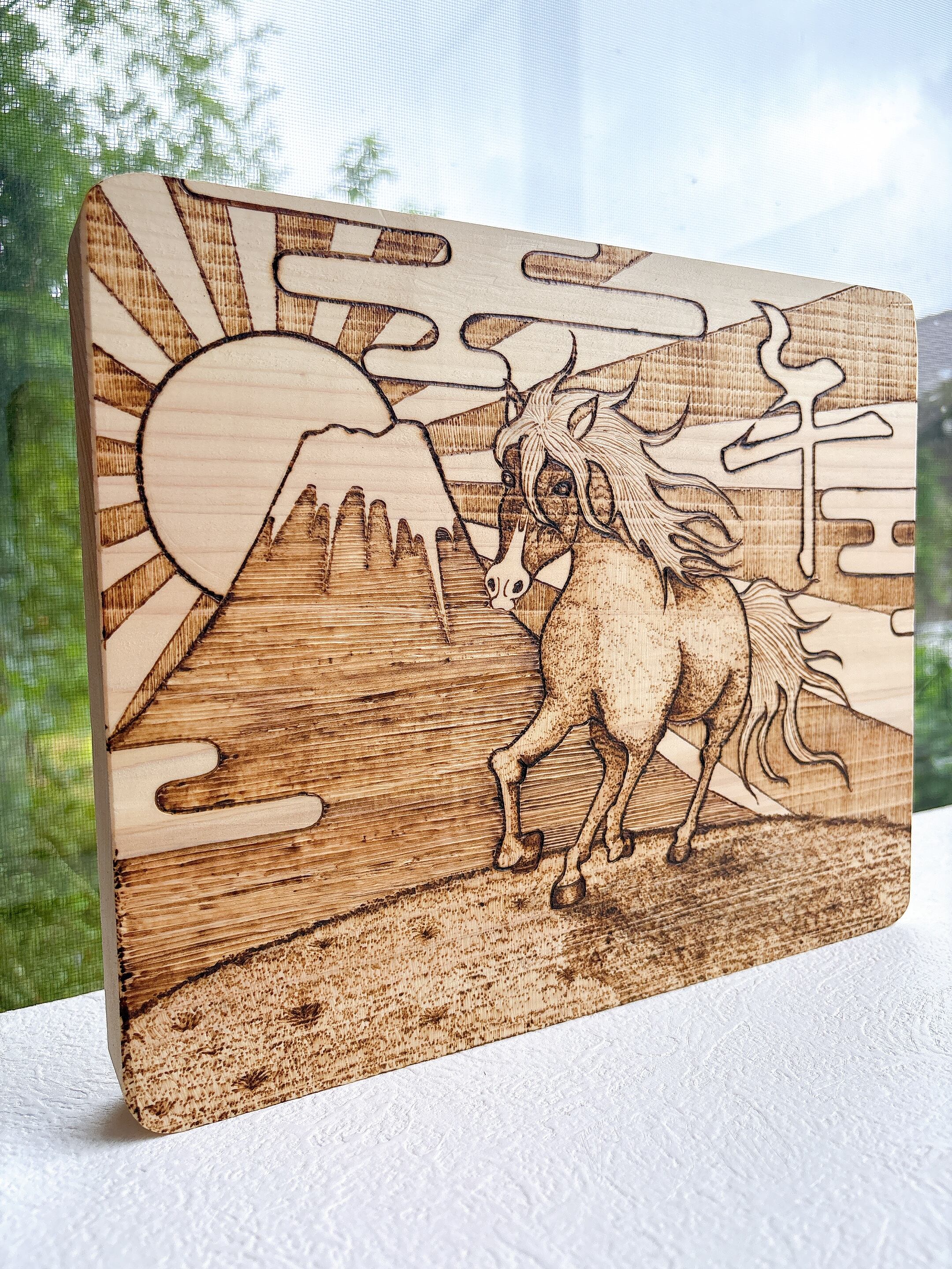 【干支 午】 ウッドバーニング 一点物 龍神村 檜 2026年干支 午年 縁起物