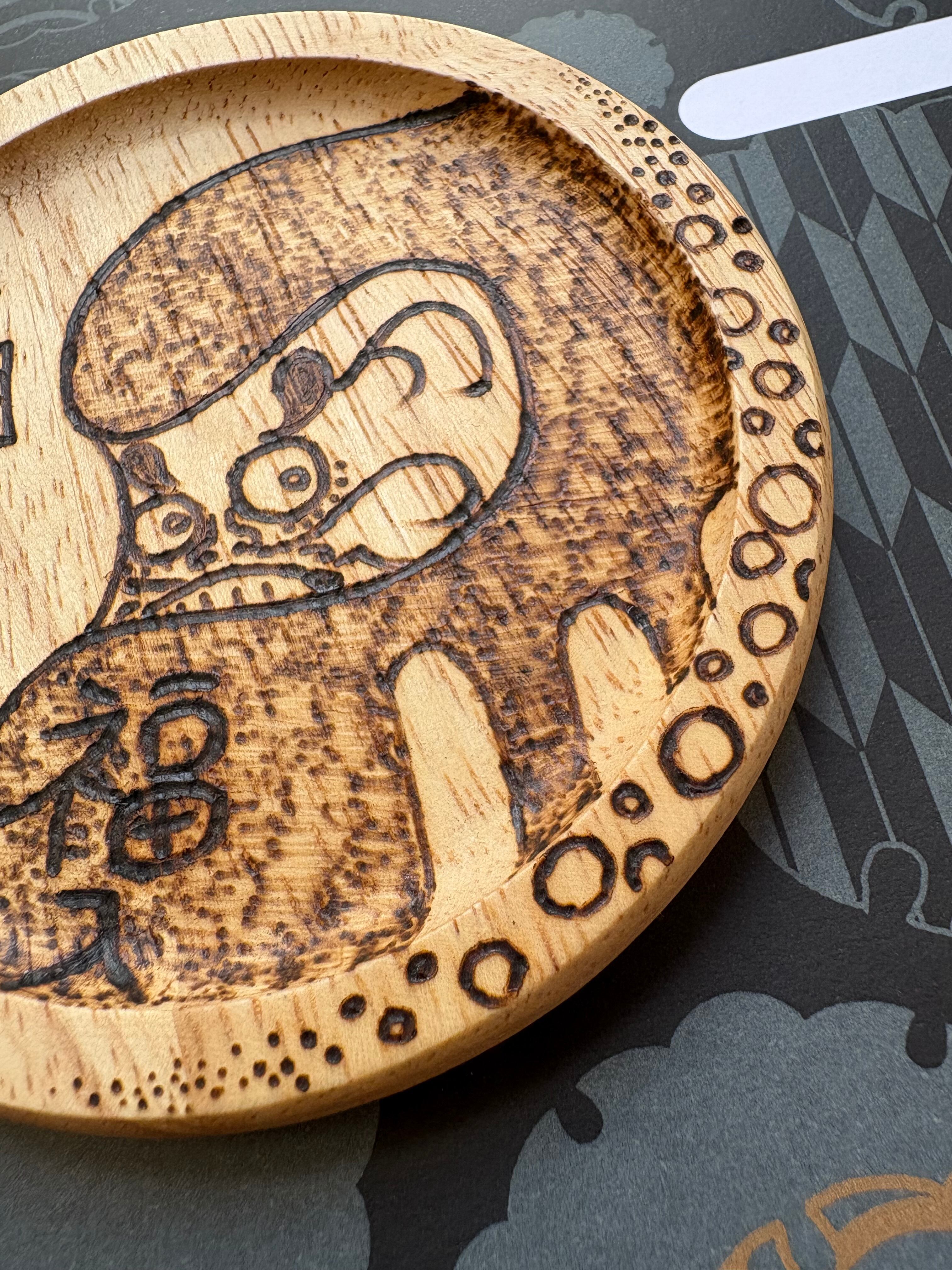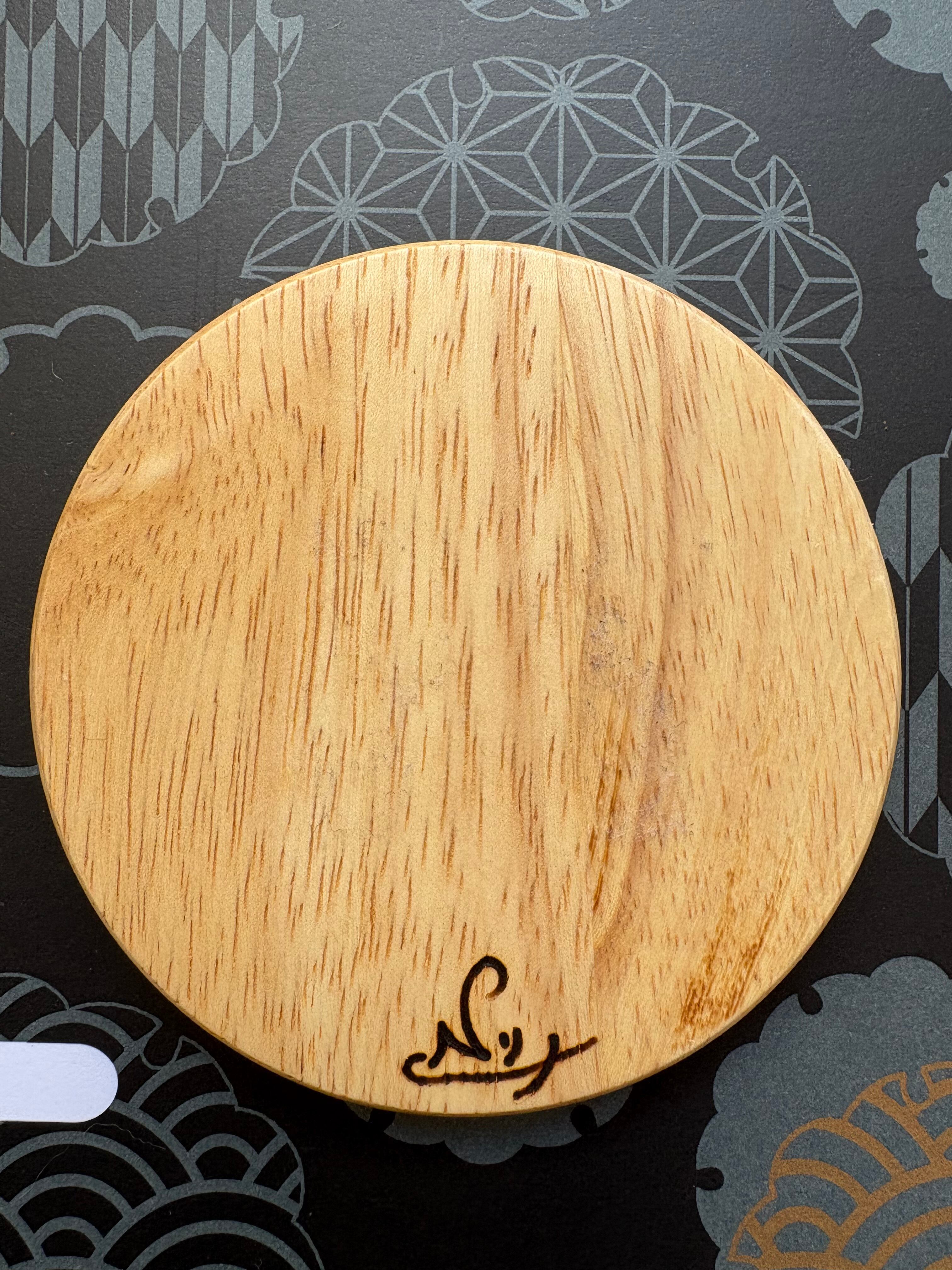 ウッドバーニングで手描きで焼いた木のコースターです。