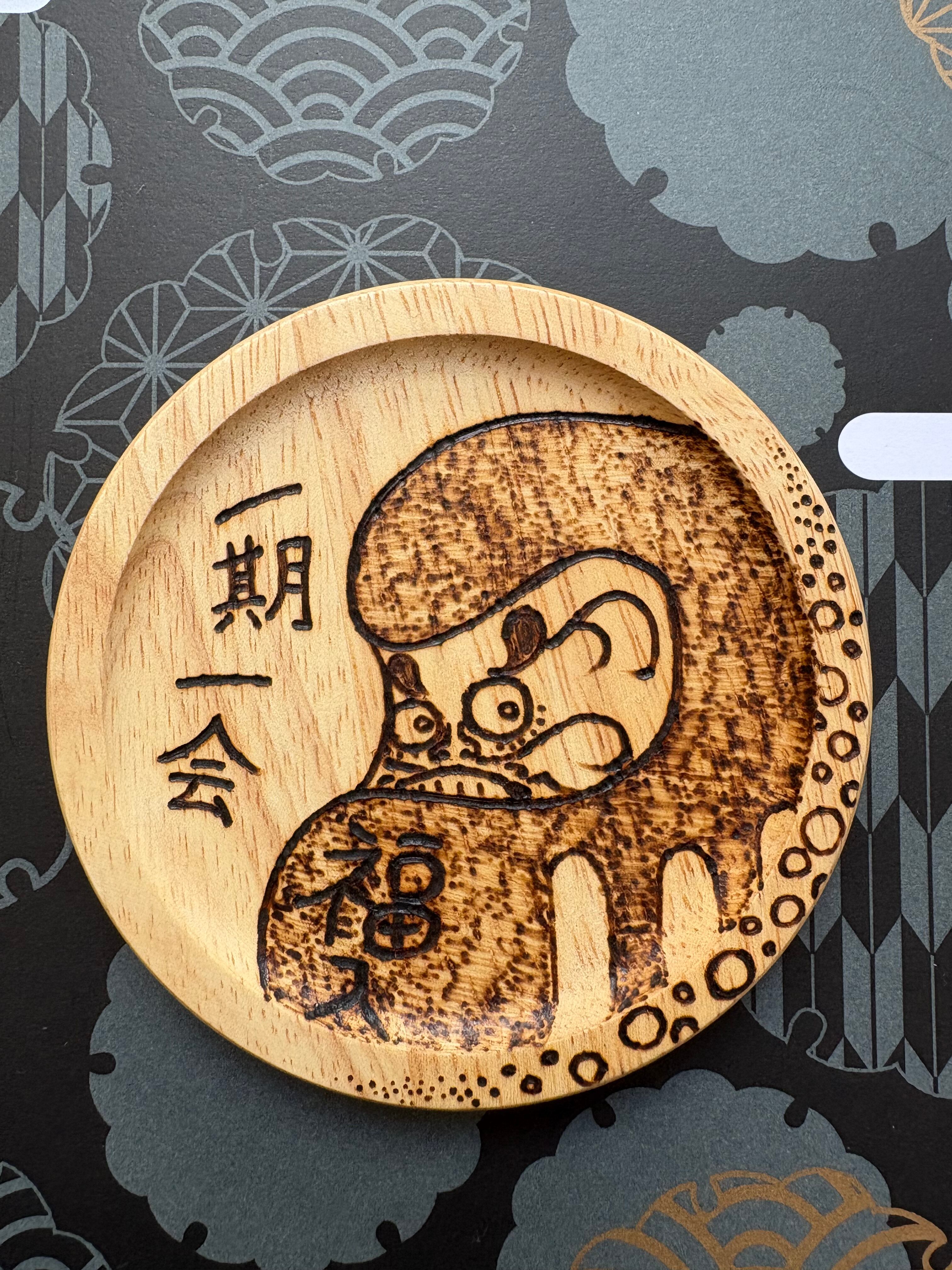 【達磨~一期一会~】手書き コースター 一点物 ウッドバーニング bar 居酒屋