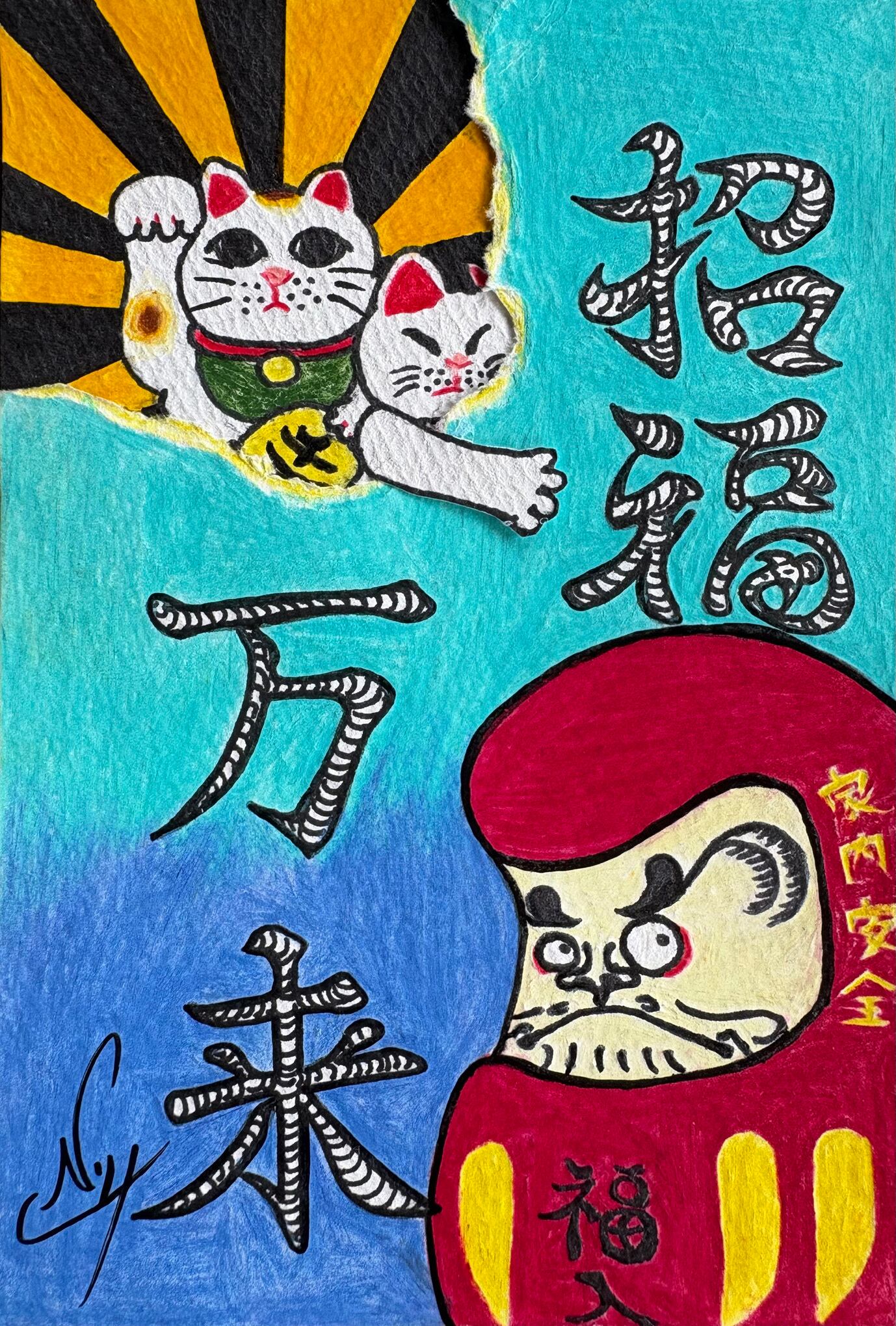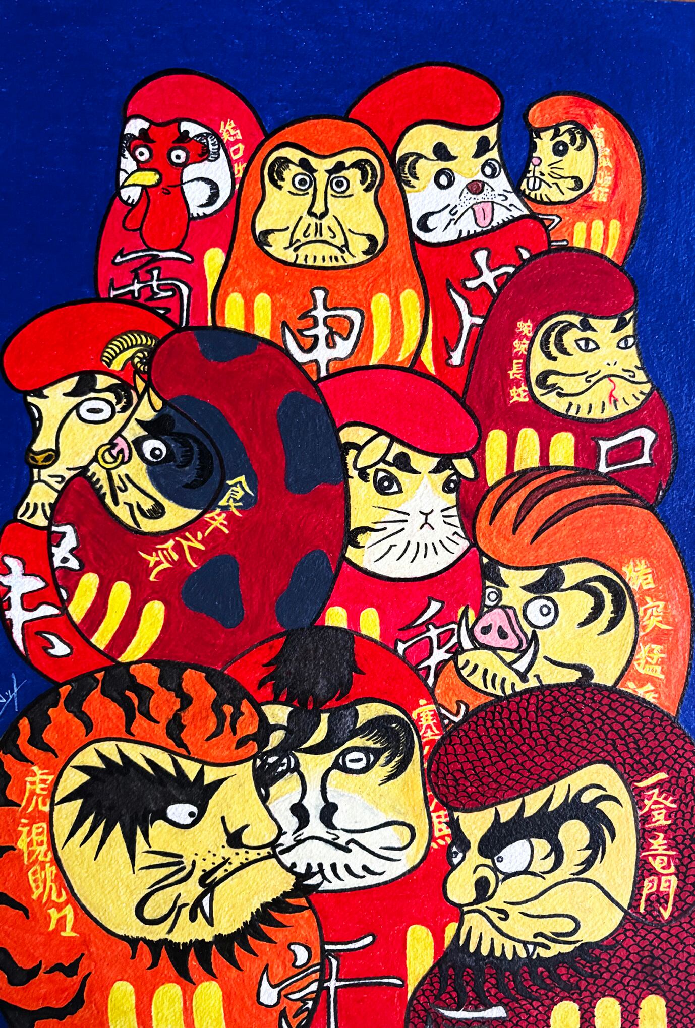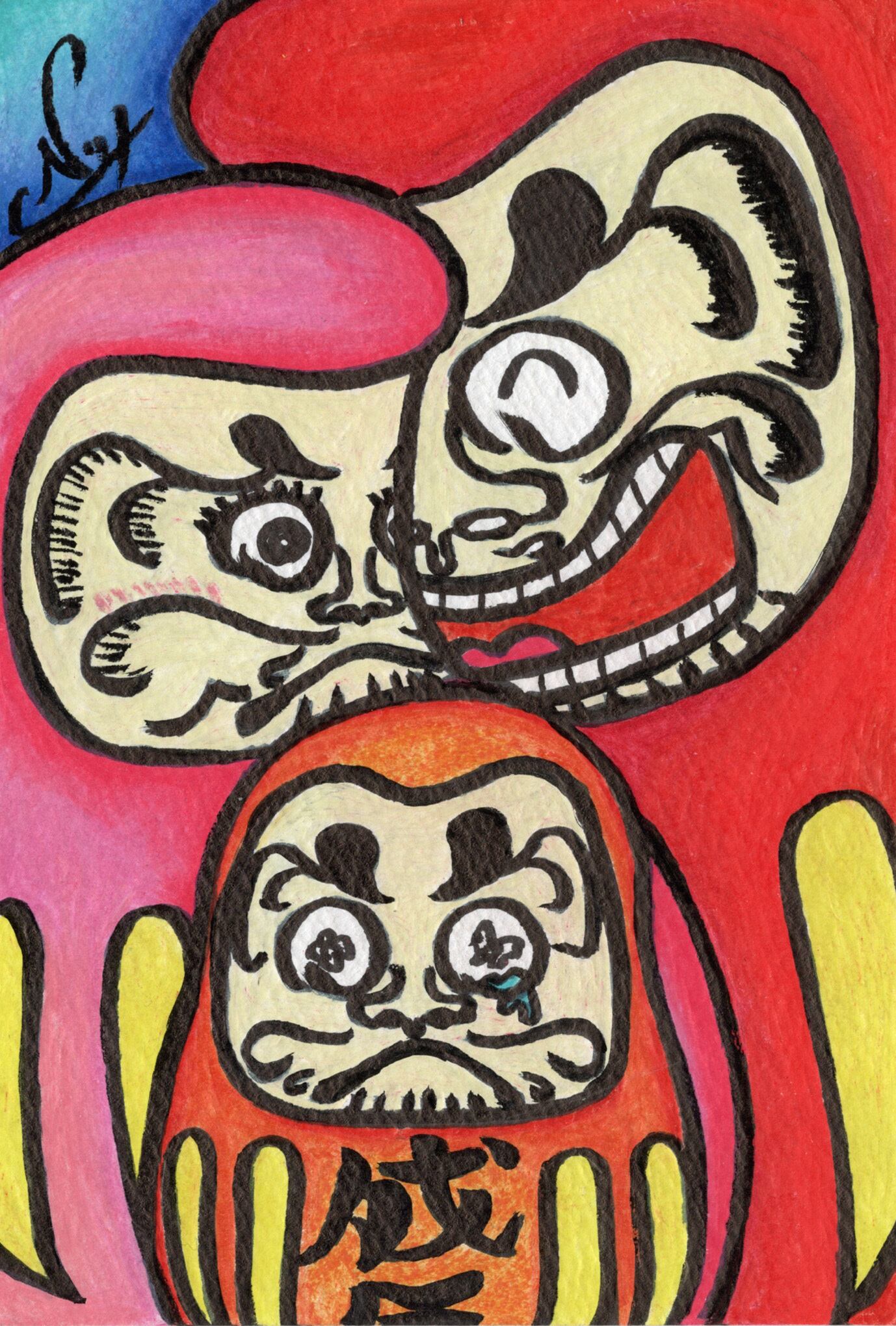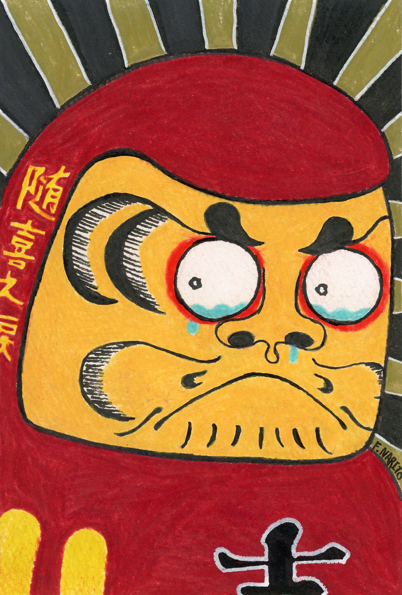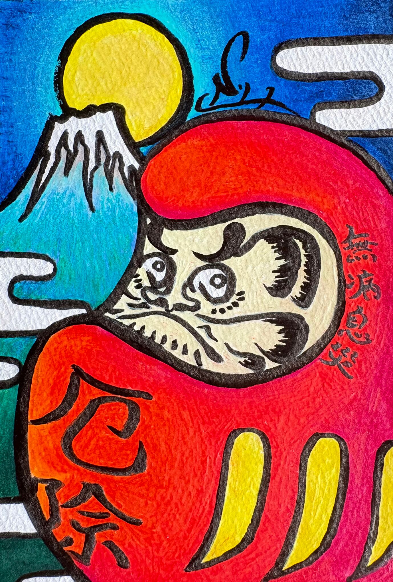 そんなだるまさんの健気な姿を色鉛筆で描いたイラストをポストカードにしました。