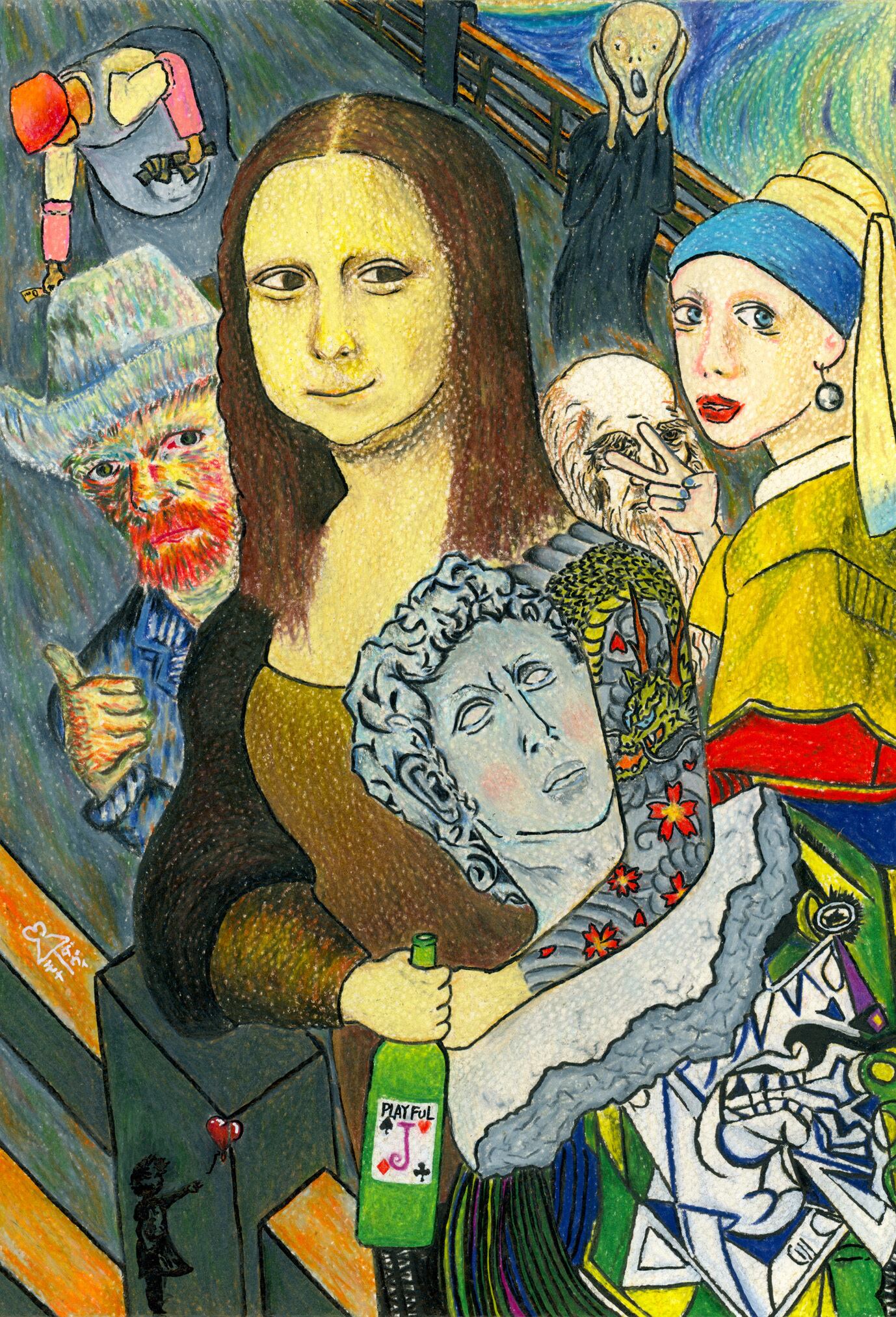 世界的有名なアート作品をオマージュした遊び心のあるイラストです。